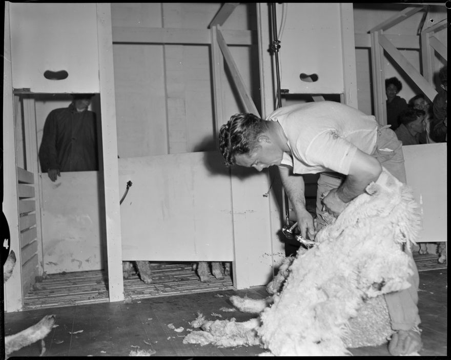 This image was not published in The Manawatu Evening Standard, taken on 9 November, 1959. “Unidentified shearer at the North Island Y.F.C. championships.” Other photo’s associated with this article were published on the 9 November, 1959.