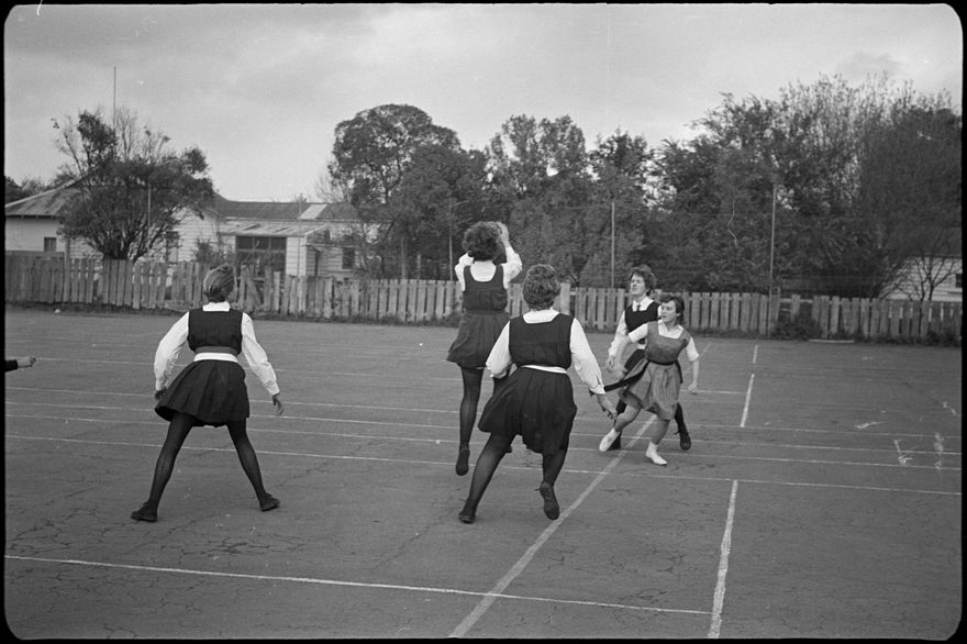 Caption: “The Junior Labour Party recently held an inter-branch tournament in Palmerston North, the girls competing in basketball and the men playing rugby.”