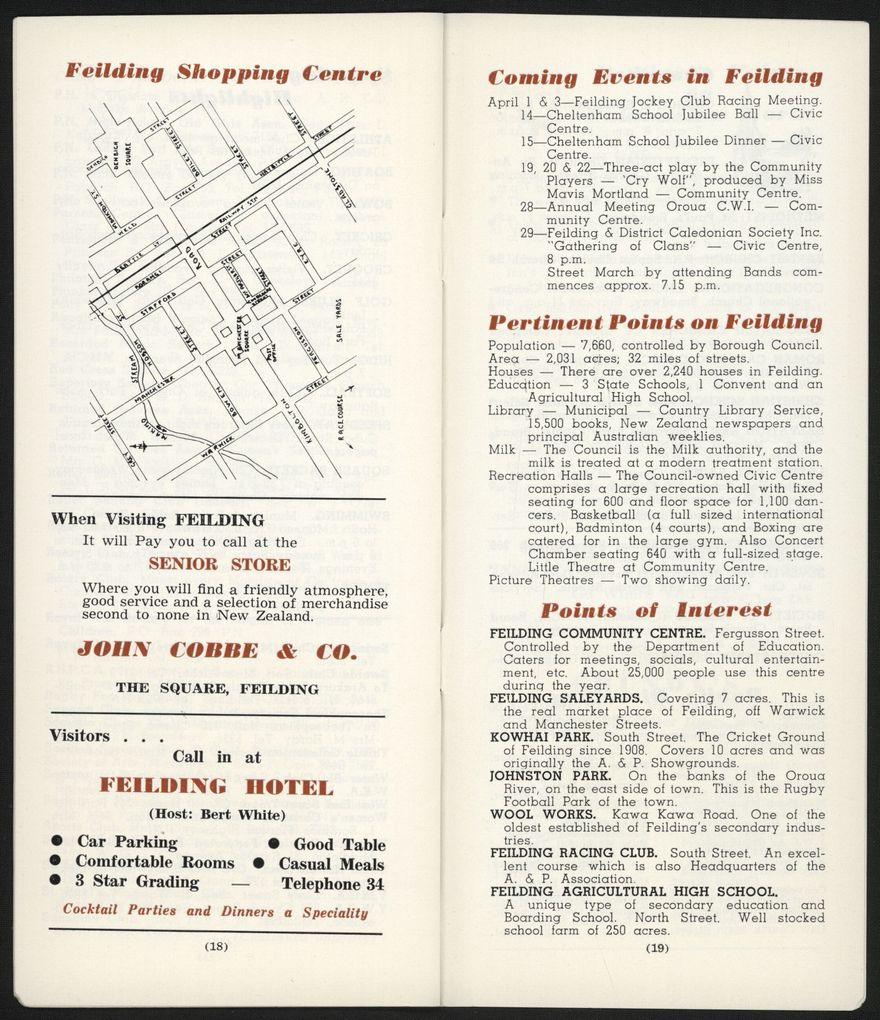 An informational booklet published monthly by the Palmerston North Public Relations Organisation (Inc.) to provide information for visitors to Palmerston North and Feilding. Includes statistics about infrastructure and demographics.