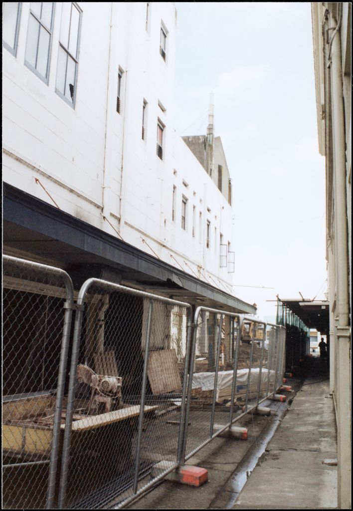 The Regent Theatre under construction during re-development work in 1996-1997. The Regent Theatre was built by the Australasian cinema and theatre chain J.C. Williamson Limited. Williamson's began its New Zealand operation in 1926. The theatre, one of several Regents built throughout New Zealand and Australia at this time, was a dual-purpose cinema and theatre. The Melbourne architect Charles Hollinshed was hired to design the building which was completed in 1930 at a cost of £46,000, becoming the largest and most lavish auditorium in the city. It retained its twin functions for much of its life, before falling into relative disuse and eventually closing in 1991. The Palmerston North City Council purchased the building 1993 and began restoration work in 1996. The Regent Theatre is a now rare survivor of the heyday of the theatre/cinema. As the only such venue in Palmerston North to survive to this day, the Regent is of great social importance to the city. The exterior design, and to a much greater degree, interior design are remarkably authentic and rare examples of theatre design in New Zealand, and as such, the Regent is a landmark building in type and style. The exterior is built in the Art Deco style, while the interior is Persian painted plaster ornament. The external symmetry, vertical fins, shallow stylised relief, stepped skyline, and chevron ornament are typical of the Art Deco style. The main entrance, with walls of coloured plaster and travertine, leads into a large barrel-vaulted, double height space, off which there are the entrances to the main performance space. The interior decoration of the theatre is taken directly from Owen Jones' book on design, “Grammar of Ornament.” The auditorium seats 1393 people in a two-tier circle and stalls arrangement (originally it accommodated 1600 guests). Architect, Charles Hollinshed graduated from Sydney University in 1922, one of the first three graduates in architecture in Australia. With A.H. Walkely, Hollinshed practised in Melbourne and the firm specialised in theatre and cinema design. One of their best-known designs was Her Majesty's Theatre, Melbourne (1934). Hollinshed also design Hoyts Limited (with Richard Gailey) the celebrated "Spanish Gothic" Regent Theatre, Brisbane (1929), now demolished.