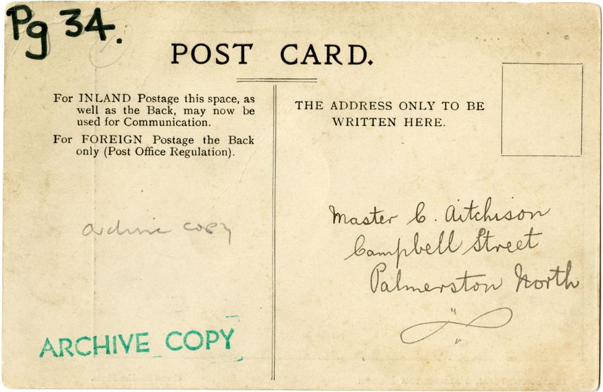 This postcard addressed to Master C. Aitchison of Campbell Street, Palmerston North, depicts an unusual snow fall for Palmerston North around the 6th of August 1904.