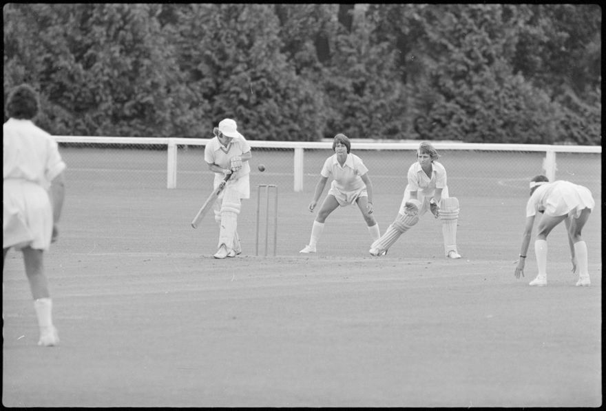 This image was taken (but not published) by the Evening Standard between the 27th and 29th of December 1980. It depicts a moment of action from the Hallyburton Johnstone Shield 2-day match between the Central Districts and North Shore women’s cricket teams. The match was drawn.