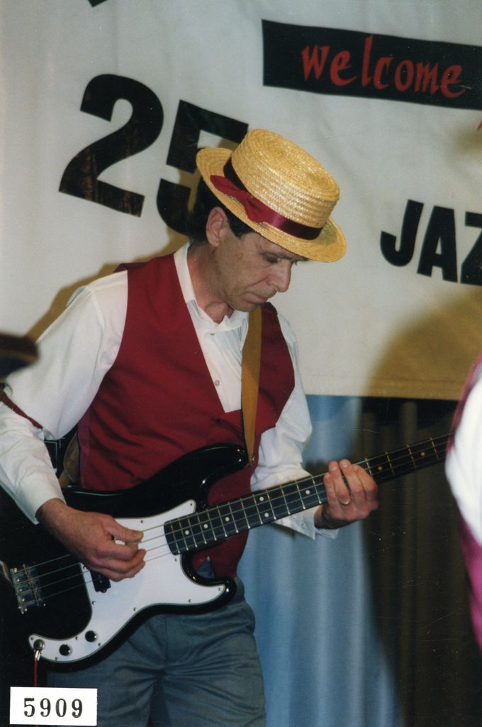 Russel Tozer (bass) performing with The Trad Seven at the 25th Annual Manawatū Jazz Festival.