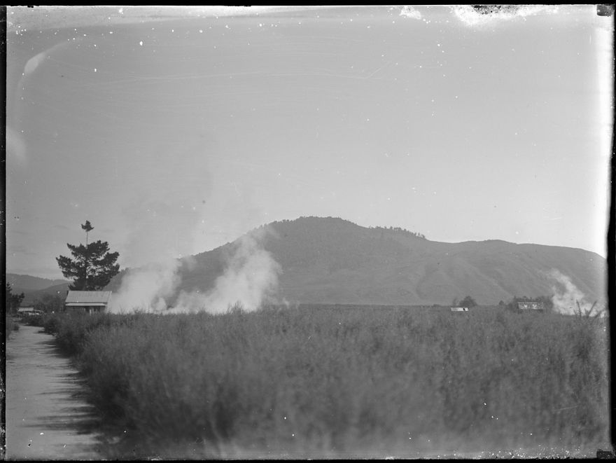 This photograph was created by William James Young in the early 20th century. A large variety of subjects are depicted in the collection, but family, rural life and travel are the most prominent themes. The exact location of the photographs in the Young Collection is unknown, but W J Young lived on a farm in Mt Stewart, Rangitikei, and some of the photographs include his house. The Young family were apparently avid travellers and photographs later in the collection feature scenes from Rotorua, Auckland, Whanganui, as well as other unidentified locations. The portraits are all unidentified, but are presumably of members of the Young family. The photographers parents were George Henry (b 1833) and Jane McDowell (b 1842, d 1916). They came to New Zealand in 1877. The same year, they bought the home farm on Mt Stewart and called it Kilrudden after Kilrudden House, the home of the McDowell family in Ireland. The couple had four children: Ann (b 1873), Margaret (b 1876), John (b 1878) and William James (b 1880). William James married Mary Elizabeth Thompson and they had four children: Doris (b 1914, d 1989), George (b 1916, d 1991), Royden McDowell (b 1925, d 1992) and Noel William (b 1927, d 2013).