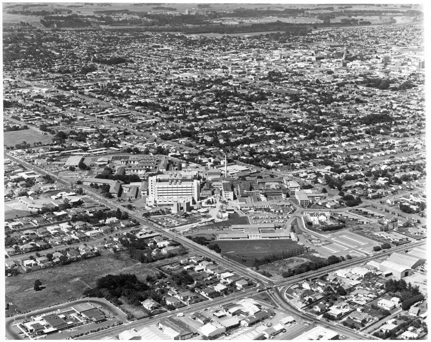 Aerial photograph of Palmerston North Hospital.