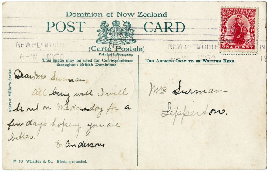 This postcard of The Square shows the businesses that ran from the corner of Coleman Place (now Coleman Mall) to near the corner of Rangitikei Street.
