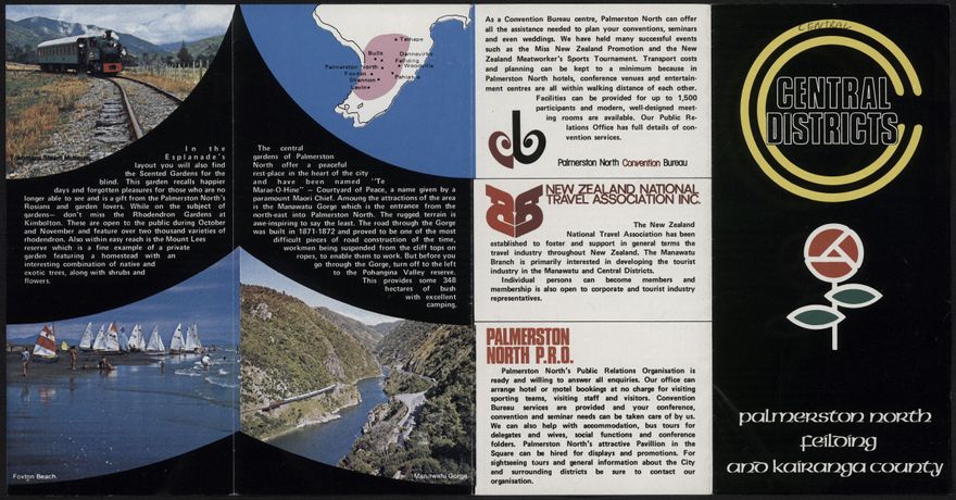 - An informational pamphlet published by the Palmerston North Public Relations Organisation (Inc.) promoting the region for visiting and as a convention centre.
