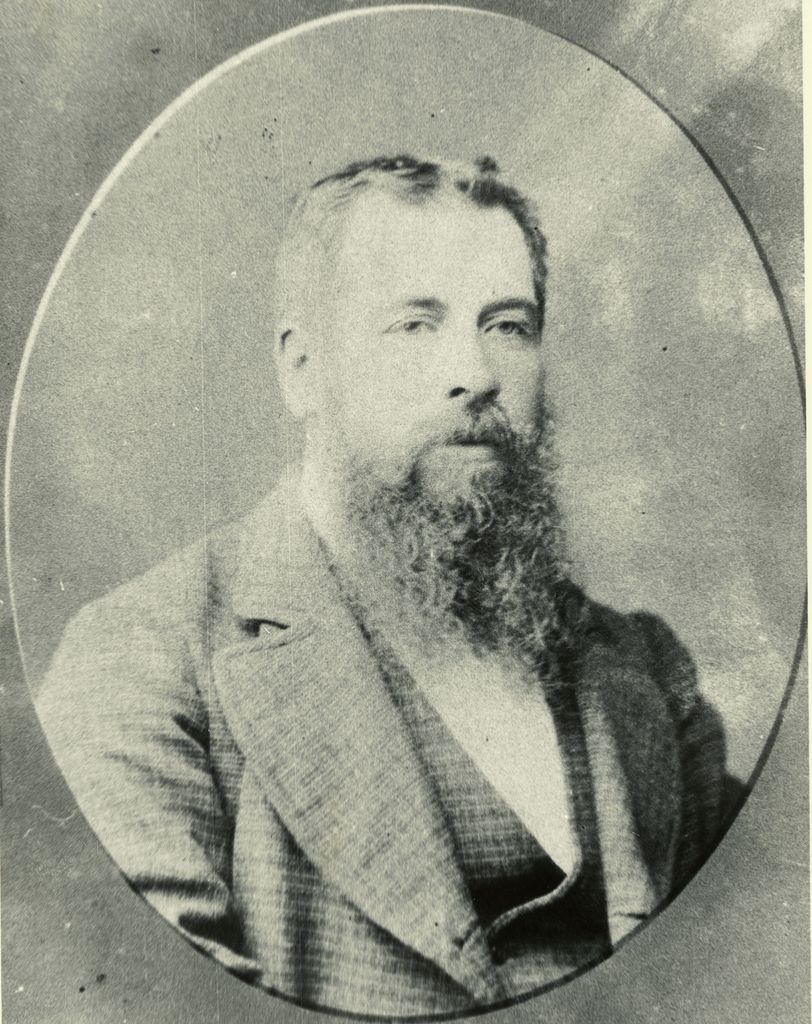 Born in England in 1837, George Snelson arrived in New Zealand in 1861. He settled in Palmerston North in 1871 and was elected Mayor in 1877. Caption (indistinct) reads, "G.M. Snelson who left Wellington for Palmerston North in the 'Go Ahead' steamer, April 1871. See also 2007N_Pi1_PEO_0339 and 2013N_Pi206_006897.