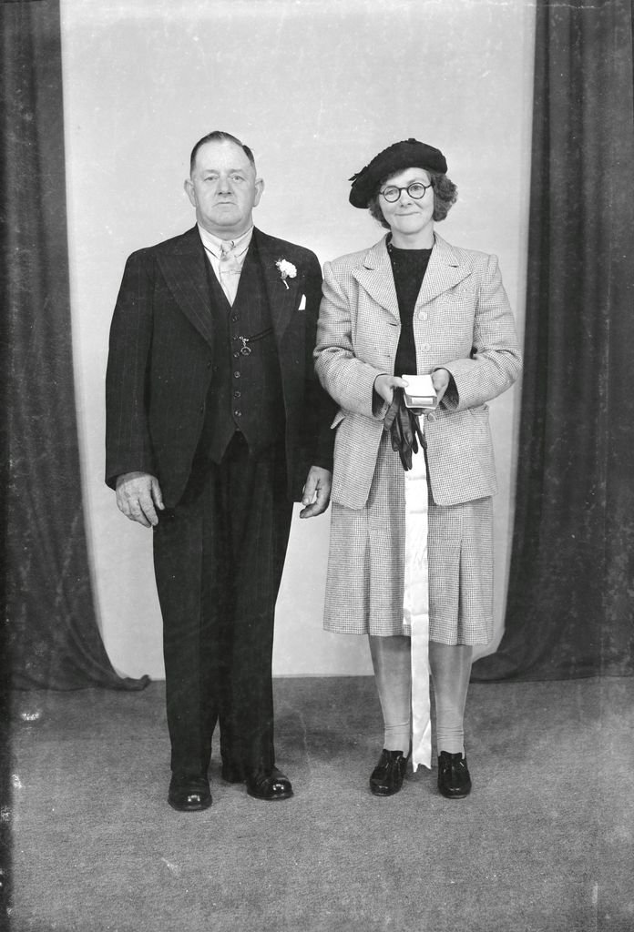 This unidentified couple are thought to be father and mother of the bride or groom.
