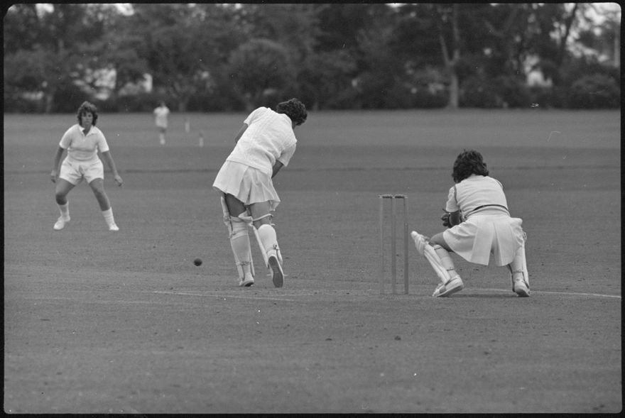 This image was taken (but not published) by the Evening Standard over the 3rd and 5th of January 1981. It depicts a moment of action from the Hallyburton Johnstone Shield 2-day match between the Auckland and North Shore Women’s cricket teams. North Shore won by 4 wickets.