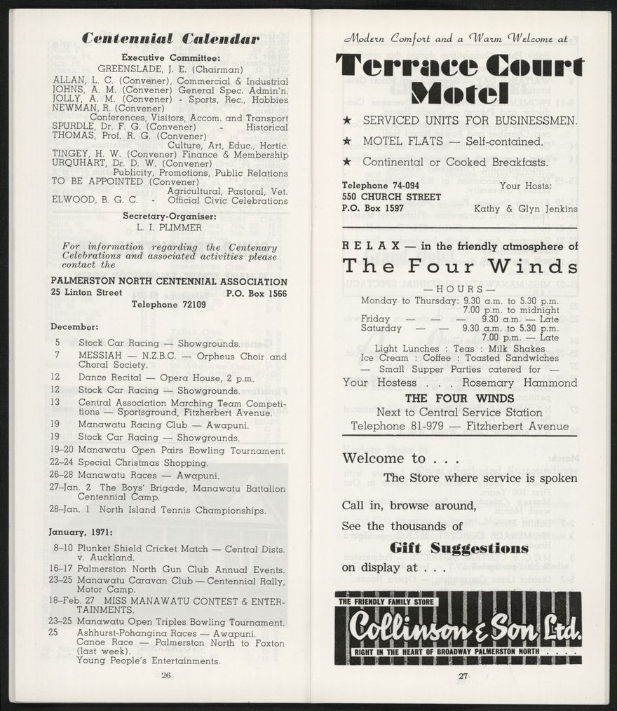 An informational booklet published by the Palmerston North Public Relations Organisation (Inc.) to provide information for visitors to Palmerston North. Includes statistics about infrastructure and demographics.