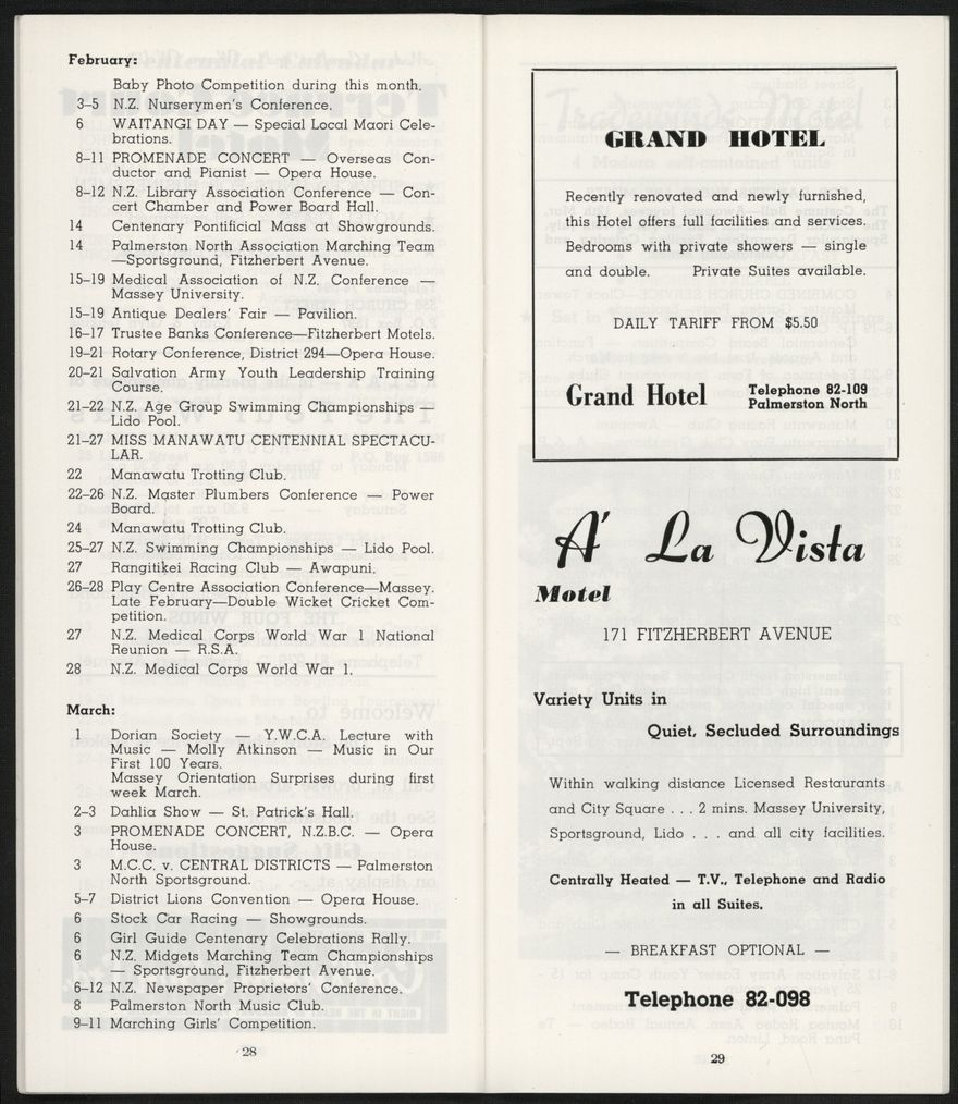 An informational booklet published by the Palmerston North Public Relations Organisation (Inc.) to provide information for visitors to Palmerston North. Includes statistics about infrastructure and demographics.