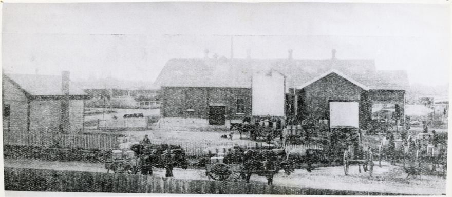 The Rongotea Co-operative Dairy Co. Ltd was founded 1895. Farmers line up to unload milk at the new Dairy Factory, built 1911, the third in Rongotea. The photograph was published 20 September 1911.