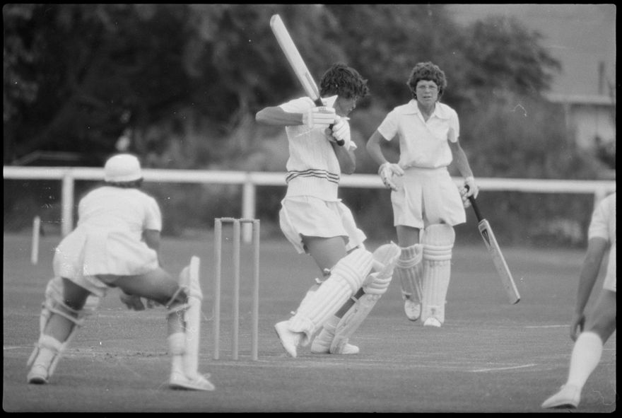 This image was taken by the Evening Standard on 21st of January 1982 and published on the 22nd. It depicts the New Zealand women’s cricket team taking on the International XI women’s team in a limited over match for the Hansell's Vita Fresh Women's World Cup 1981/1982. The match was held at Fitzherbert Park in Palmerston North. The New Zealand team won by 97 runs.