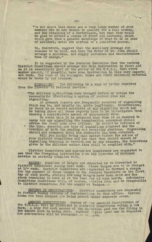 Women's War Service Auxiliary Memorandum