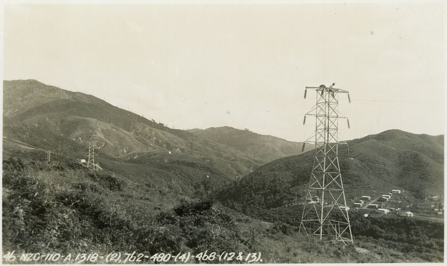 The Mangahao pipeline is in the left background. The Mangahao Power Station provides hydroelectric power and is situated near the town of Shannon. It serves Wellington, Horowhenua, Taranaki, Hawkes Bay, and the Wairarapa. After being delayed by the first world war construction began in late 1919 and the station opened in November 1924. The substation for Wellington was built at Khandallah.