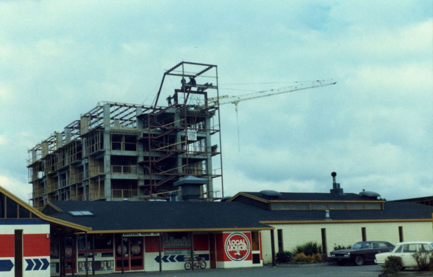 The Quality Inn under construction as seen from Ferguson Street. The Copthorne Hotel now occupies the site (2020), previously it was the Kingsgate Hotel.