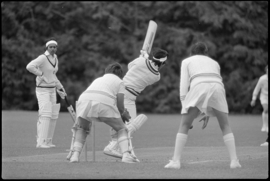 This image was taken (but not used) by the Evening Standard on 24 January 1982. It depicts the New Zealand Women’s Cricket team taking on the Indian Women’s Cricket team in a limited over (60) match for the Hansell's Vita Fresh Women's World Cup 1981/1982. The match was held at Fitzherbert Park. New Zealand won by 8 wickets.