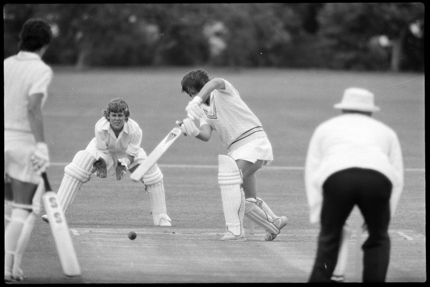 This image was taken (but not used) by the Evening Standard on 19th of January 1982. It depicts Manawatū Women’s cricket team taking on the International Australian Women’s team in a limited over warm-up match for the Hansell's Vita Fresh Women's World Cup 1981/1982. The match was held at Ongley Park in Palmerston North. The Australian team won by 202 runs. The match report ‘Aussies too polished in all facets’ was written by Ford Watson and published the next day:
