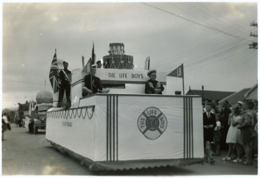 Palmerston North held its 75th Jubilee Celebrations during the week of 15th March 1952. Shown here is the float decorated by The Life Boys, which was what the junior section of the Boys' Brigade was called at that time.