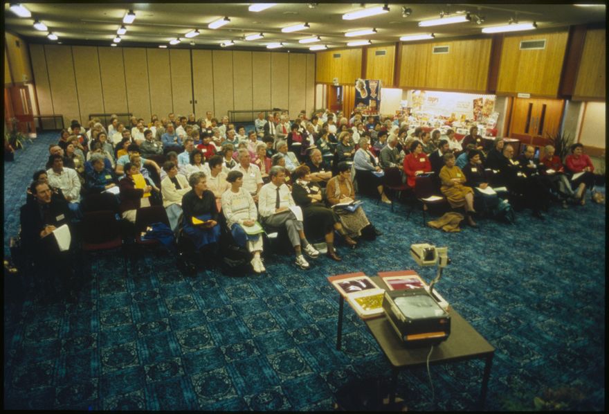 This slide shows some sort of conference event. Possibly at the Centennial Convention Centre (now the Conference and Function Centre). This slide is from a series that was possibly taken for publicity purposes. Based on other images in the set, this image appears to have been taken in the mid-1990s.
