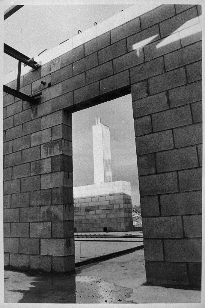 This photograph shows the tower of the boiler house of Palmerston North's fifth high school. Located in West End, this school opened a year after this photograph was taken.