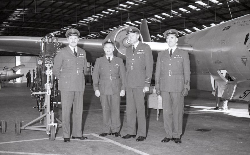 Caption: "The Cheif of Air Staff (Designate) of the R.A.F., Air Chief Marshall Sir Charles Elworthy, G.C.B., C.B.E., D.S.O., M.V.O., D.F.C., A.F.C., a New Zealander, visited Ohakea on his way to Wellington."