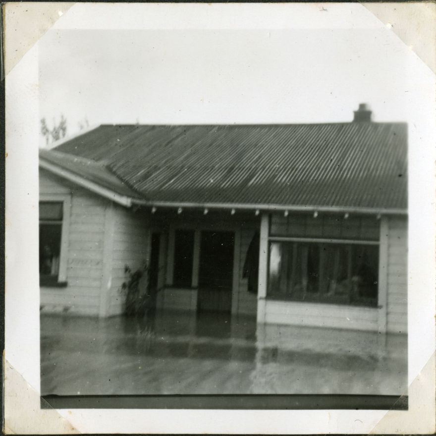 The 1953 flooding of the Manawatu and Oroua River was one of the worst on record for the area.It is said that the floodwaters reached the windowsills of this family home. A family member returned to the house to collect much needed supplies when the telephone rang. The company who owned the petrol pumps next door wanted them to be checked, but they were still under a foot of water at the time.