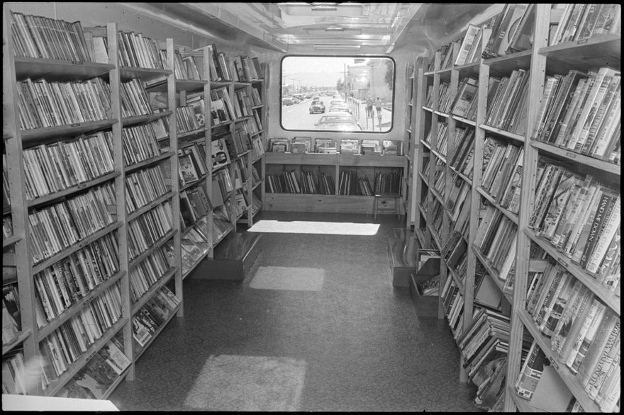 Equipped with a cross-section of books from central library stock, the mobile library was able to cover the city in more depth than the previous caravan. Special attention was given to new housing areas and those with young children and the elderly. Lending materials included also art prints, magazines and records.