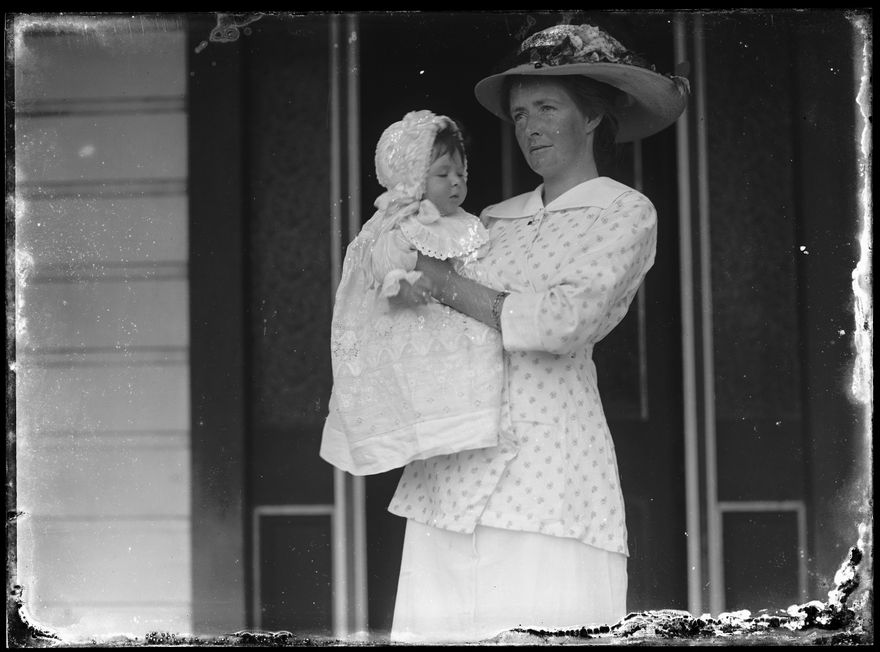 This photograph was created by William James Young in the early 20th century. A large variety of subjects are depicted in the collection, but family, rural life and travel are the most prominent themes. The exact location of the photographs in the Young Collection is unknown, but W J Young lived on a farm in Mt Stewart, Rangitikei, and some of the photographs include his house. The Young family were apparently avid travellers and photographs later in the collection feature scenes from Rotorua, Auckland, Whanganui, as well as other unidentified locations. The portraits are all unidentified, but are presumably of members of the Young family. The photographers parents were George Henry (b 1833) and Jane McDowell (b 1842, d 1916). They came to New Zealand in 1877. The same year, they bought the home farm on Mt Stewart and called it Kilrudden after Kilrudden House, the home of the McDowell family in Ireland. The couple had four children: Ann (b 1873), Margaret (b 1876), John (b 1878) and William James (b 1880). William James married Mary Elizabeth Thompson and they had four children: Doris (b 1914, d 1989), George (b 1916, d 1991), Royden McDowell (b 1925, d 1992) and Noel William (b 1927, d 2013).