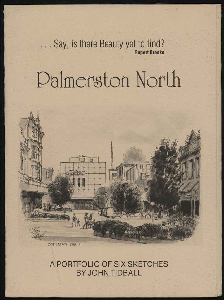 John Tidball, a Palmerston North commercial artist, trained at Harrow School of Art in England. He lived in Australia for 15 years and then moved to Palmerston North. He now lives in Ashhurst and continues to paint [2018]. These six sketches show popular scenes from the Manawatū region, including local landmarks and street scenes.