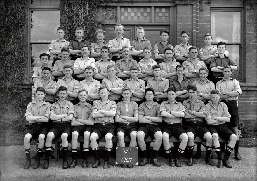The sixth form class of 1947 group pose for their photograph. The boys from Form VI in 1947 pose for their photograph. According to the school year book for 1947, the boys in this form are: R Abraham, R Aldridge, E Arlidge, B Barrett, B Bell, E Brookie, I Burnett, I Burrell, D Capill, W Clarke, H Clifford, D Dale, S Eglinton, R Fletcher, M Gair, M Geange, M Greenwood, R Gee, B Hassell, C Hay, B Heaphy, J Hubbard, P Kerr, G Kirk, K Lawrence, B Liddell, A Loughnan, D Madgwick, K Naylor, K O’Brien, D Olsen, D Parham, L Patterson, R Petersen, J Rhodes, M Simpson, C Smith, M Trail.