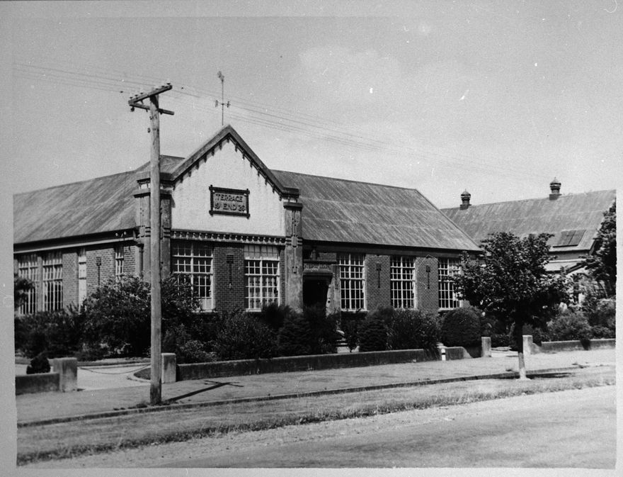 An early image of Terrace End School. A previous original Terrace End School building was situated in Main Street in 1884. Mrs Harvey was the first teacher. In June 1884, the School was moved to Deard's Hall in Main Street, near its current location. Mr G.Nye was headmaster. He was followed by D.H. Guthrie, C.H. von Blaremberg and T. F. Fairbrother (by 1893). The School was moved to Terrace Street (renamed Ruahine Street in 1926) in September 1885. Several new buildings were constructed between 1927 and 1960.