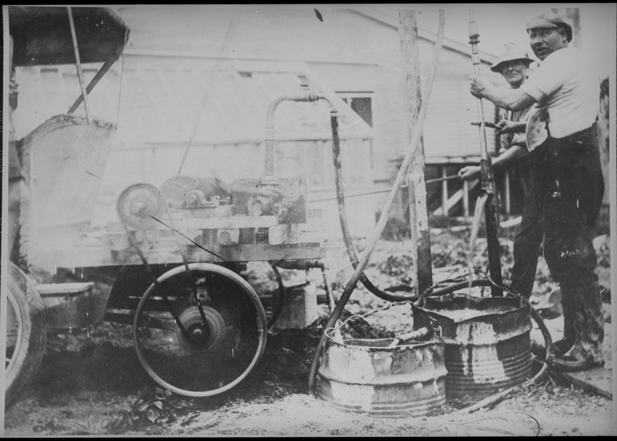 Well drilling, Ashhurst - Ernest H King and Dave Love