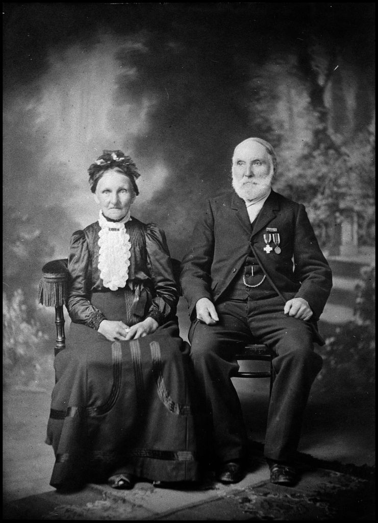 The Koehler's arrived in New Zealand onboard the "Gutenberg" in 1875 and farmed in Palmerston North. Anton is pictured wearing the Iron Cross he won during the Franco-Prussian War of 1870. They are the parents of George K. C. Koehler (a farmer in Napier Road) and Grandparents of Mrs J. E. Chandler.