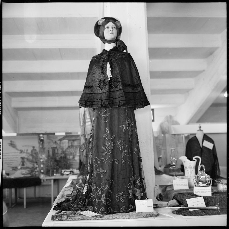 - This image was taken for a story that ran in The Manawatu Evening Standard on 27th January 1966 "The fine lace-work of this 19th century "Sunday best" gown is beautifully preserved from the days when it graced the wardrobe of a pioneer's wife. It was the striking centre-piece of a fascinating display of bygones - arranged by the Marton Historical Society to mark the 50th Marton A. and P. Show."