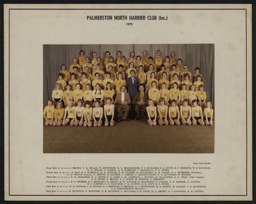Identified are: Front Row (l. to r.).— J. BROWN, T. M. HILLAS, W. STEVENSON, D. C. BROKENSHIRE, P. B. RICHARDS, D. A. STONE, B. F. HERMENS, W. B. HAYDOCK, K. B. HILLAS, C. NAIRNE, A. B. DARROCH, T. McANULTY, C. E. STONE. Second Row (l. to r.).— B. MAY, H. J. DARROCH, M. A. ANNEAR, D. M. COOPER, D. STEVENSON, K. M. STONE, P. L. RICHARDS (President), A. G. WHALE (Patron), C. BROWN, D. HUGHES, J. CARIAN, V. McCLENA GHAN, C. A. KAYWOOD, W. HUGHES. Third Row (l. to r.).— K. D. RICHARDS, M. A. STONE, P. A. GARE, V. M. DARROCH, J. SAXTON, M. McALINDEN, B. E. TRAIL (Club Captain), S. A. STONE. P. BROWN, T. C. STONE, M. BIDDICK, C. HERMENS. Fourth Row (l. to r.).— B. A. WEBBER, K. J. BERQUIST, W. BROWN, B. W. ANNEAR, R. SPACKMAN, S. GOGGIN, P. R. HARDER, N. SAXTON, R. J. CURNOW, C. N. FLETCHER, T. R. COTTON, H. K. LETT, R. A. STONE. Fifth Row (l. to r.).— W. E. ANNEAR, J. M. ECCLES, A. J. SHEEHAN, S. BROWNE, B. J. HOLMWOOD, M. D. HENDY, M. GOGGIN, J. D. McARTHUR, J. E. STRAWBRIDGE (Secretary). Sixth Row (l. to r.).— R. HAYDOCK, N. McINTOSH, D. R. HAYDOCK, L. WILLIAMS, B. R. JONES, M. A. BROWN, G. J. KAYWOOD, M. W. PATTEN.