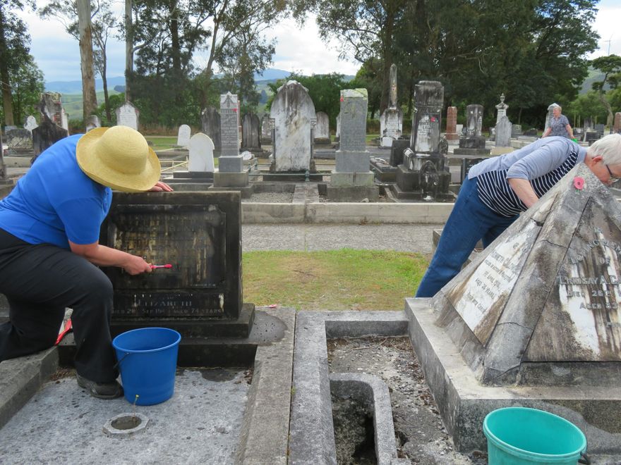 One of the activities during Local History Week 2019 was to clean gravestones at the Ashhurst Cemetery.