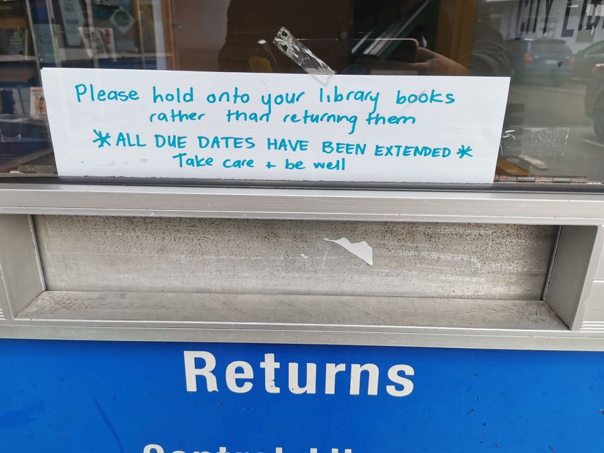 The book return slots were sealed up as library users were instructed to hold onto their returns until the libraries reopened - returning library books wasn't an essential activity, people needed to stay safe at home. Staff took the plants home with them, emptied to fridges and bins. Nobody knew how long the lockdown would last or how long the building would be closed up for.