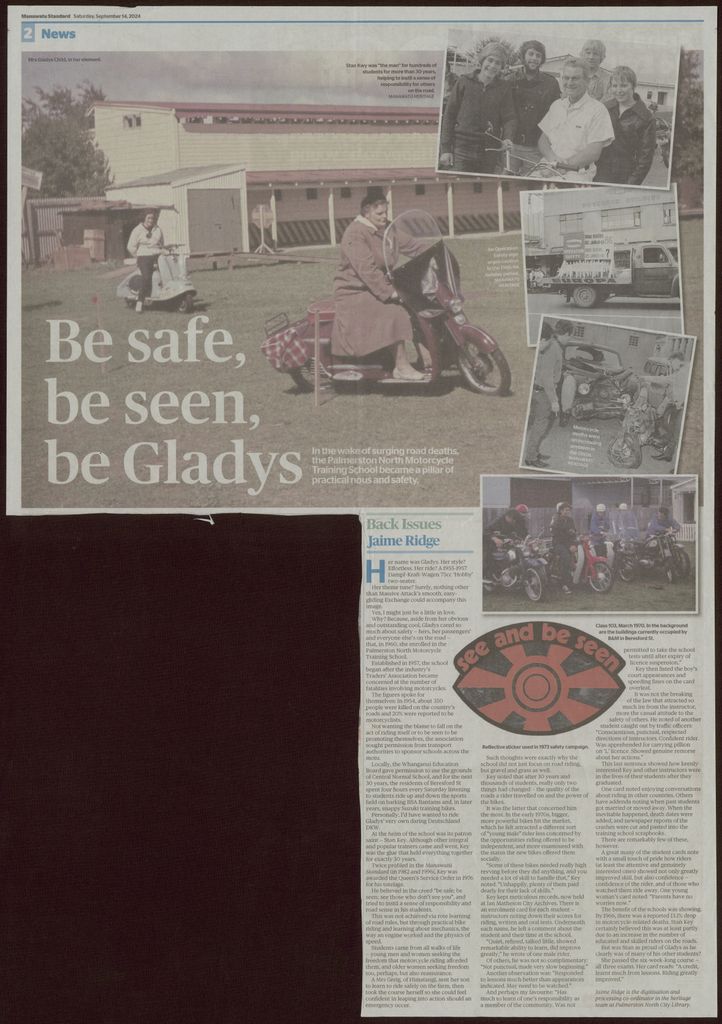 Local historians weekly "Back Issues" article in the Manawatū Standard. In 1957, the Palmerston North Motorcycle Training School was established in response to concern about the number of fatalities involving motorcycles. Stan Key was its leader for 30 years, overseeing a programme of practical bike riding, learning about mechanics, the way an engine worked and the physics of speed. He maintained meticulous records, keeping an enrolment card for each student. Each card has a record of the student's progress, tests scores and often a personal observation of the student's skills and ability. Key was recognised with a Queen's Service Order, awarded in 1976 for his work with the Training School.