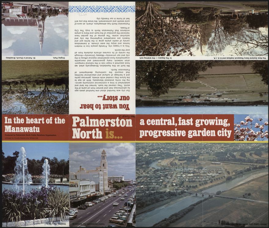 An informational pamphlet published by the Palmerston North Public Relations Organisation (Inc.) to provide information for visitors to Palmerston North.