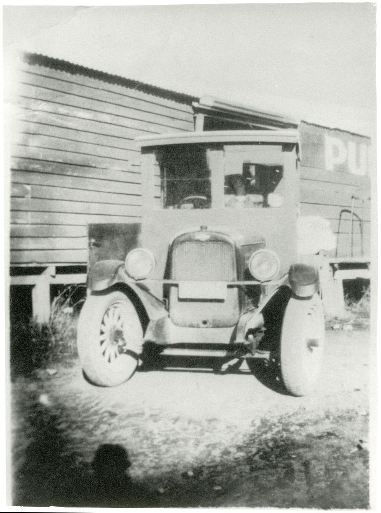 Mr Maden's truck is seen here parked outside the Puke Coal Depot in Palmerston North. Arthur owned A Maden's Grocer Co-Op Store, situated on the corner of Douglas Square and Mersey Street from 1927-1931. His truck was also used to ferry children from the surrounding area to Sunday school - allowing their parents to keep an uninterrupted milking schedule.