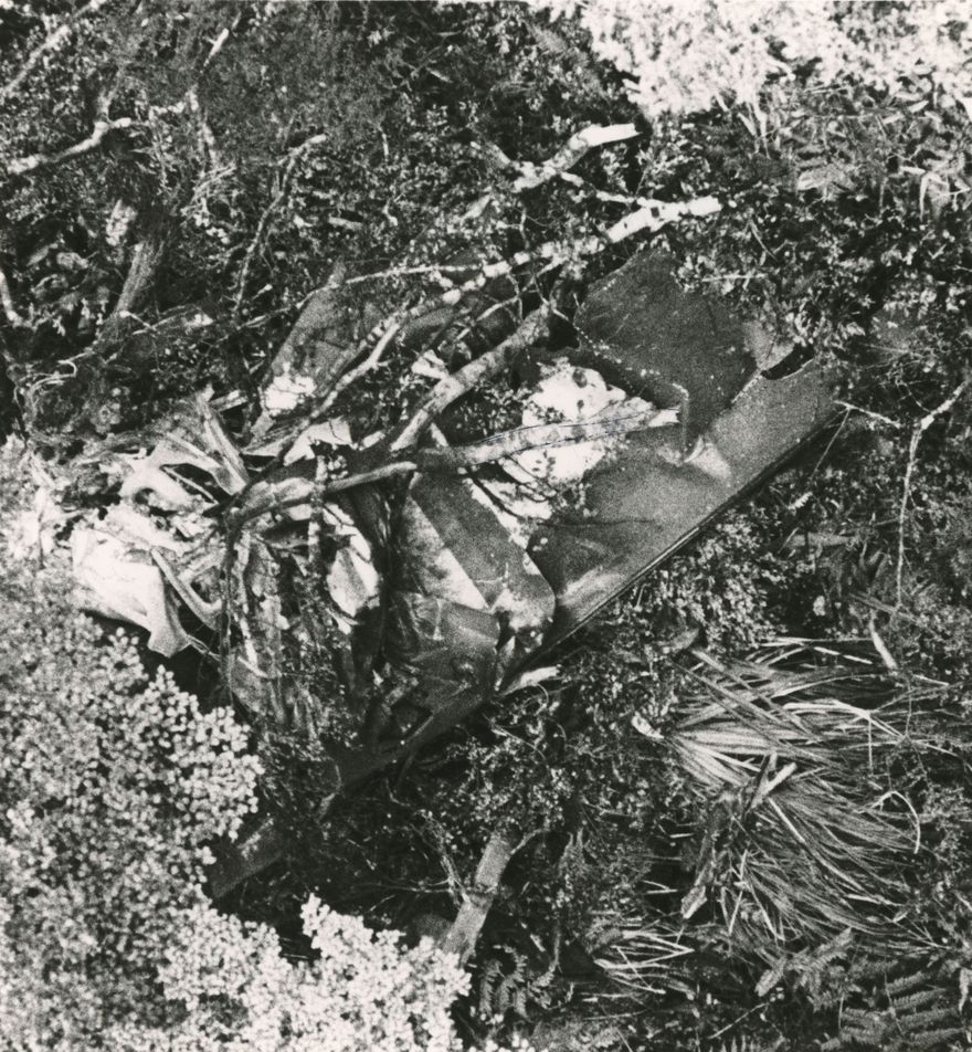 The Skyhawk, piloted by Flight Lieutenant John Nicholas Dick, was on a routine exercise in the Colenso area of the Ruahine ranges when it crashed on March 25, 1981. Flight Lieutenant Dick was killed in the crash. This photograph shows what remained of the engine. The TA-4G crashed about 25 miles from Taihape.