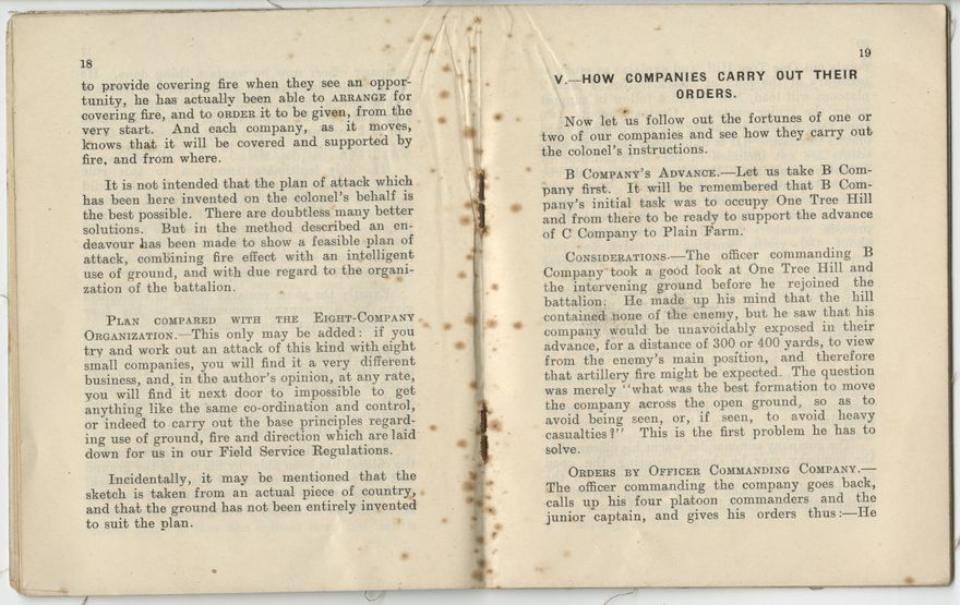 Special District Order No. 43/1915. By Colonel R. W. Tate, Commanding Wellington Military District. The subject of this paper is the four-company organization recently adopted for the infantry of the Regular Army, and which will shortly be also adopted for the Territorial Force. Originally this article was given as a lecture to the London Units of the Territorial Force, by Brevet-Major Hereward Wake, King's Royal Rifles.
