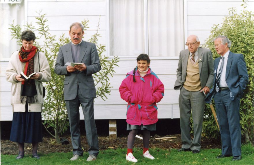 R-L: Gordon Green, Syd Shailer, Ruth McIntyre, Rev. Carson and Anne Pritchard at the Wesley Broadway Church opening following redevelopment work.