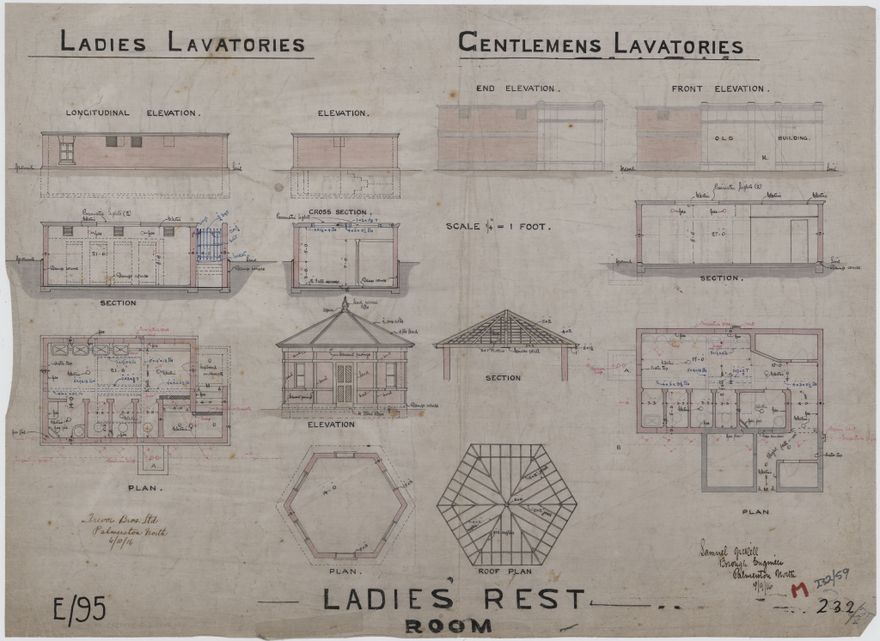 Plan of ladies and gentlemen's lavatories and ladies rest room