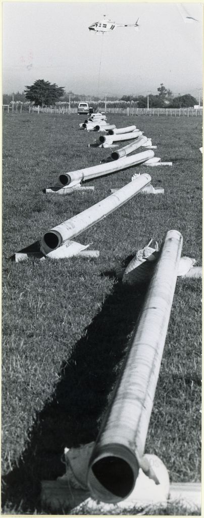 Helicopter Stringing Out a Load of Pipes for the Duplication of Himatangi - Palmerston North Gas Line