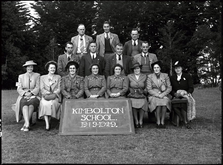 Kimbolton School, founded in 1889, is located in the Oroua River Valley, near the Ruahine Ranges. Shown here is the class of 1919 - 1929.