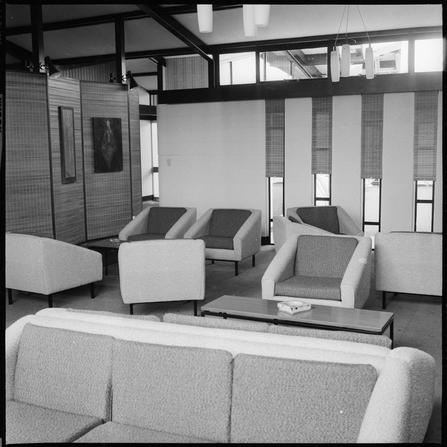 This image was taken for a story that ran in The Manawatu Evening Standard on 3rd December 1965 [Interior view of the lounge at the new Awapuni Hotel. Comfortable chairs are grouped around small tables.]