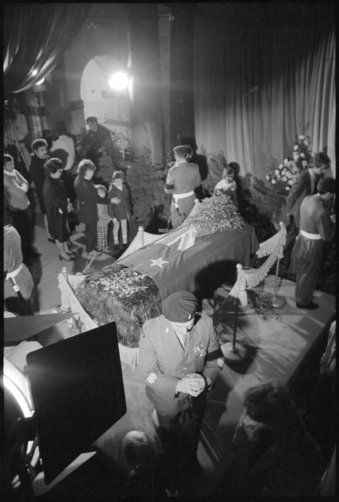 "Heads bow in grief and respect as the first of thousands begin to file around the Prime Minister's coffin in Parliament Buildings."